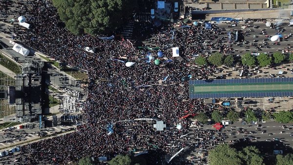 Militantes de organizaciones gremiales y sociales, actores y referentes de los derechos humanos se concentraron en el Obelisco para expresar su rechazo a las negociaciones entre el Gobierno y el Fondo Monetario Internacional (FMI), bajo la consigna "La Patria está en peligro". Cerca de las 12, los manifestantes comenzaron a llegar a la intersección de las avenidas 9 de Julio y Corrientes, donde fue montado un escenario en el que se leerá un documento contra el posible acuerdo con la entidad financiera.