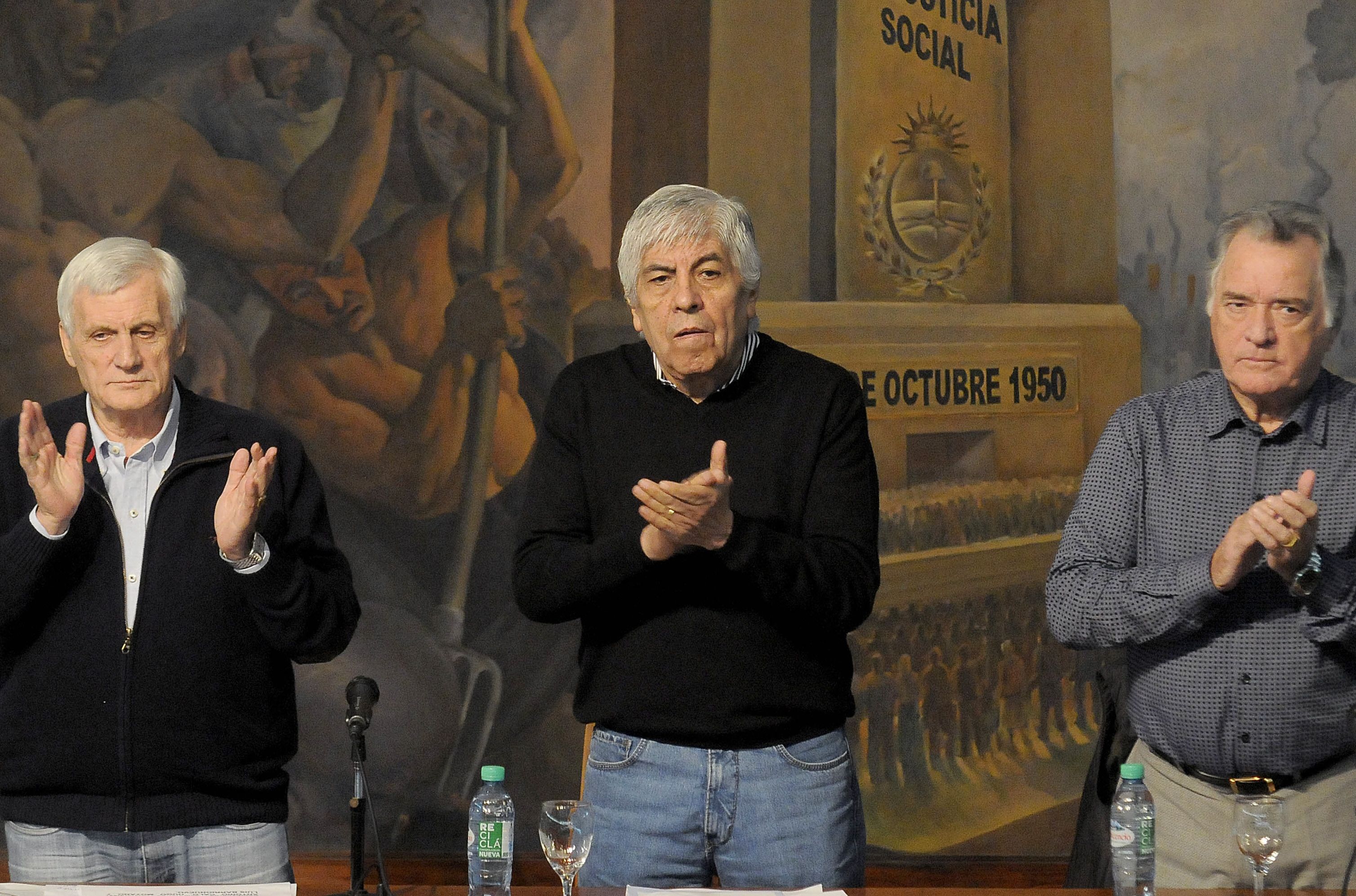 Otros tiempos. La imagen es de marzo de 2016, cuando Antonio Caló, Moyano y Luis Barrionuevo anunciaban la conformación de un triunvirato normalizador de la central de trabajadores.