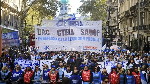 Con las consignas "Salarios dignos", "Paritaria Nacional Docente" y "No al FMI", los sindicatos docentes se nuclearon en Plaza de Mayo.