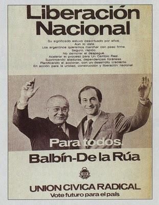 Su recorrido político empezó a tomar forma en 1973. Ese año tuvo un doble desafío: fue elegido senador en la primera elección que hubo ese año. Al renunciar Héctor José Cámpora a la presidencia, se volvió a votar y de la Rúa fue candidato a vicepresidente en la fórmula radical encabezada por Ricardo Balbín. En frente estuvo, Juan Domingo Perón, que se impuso.