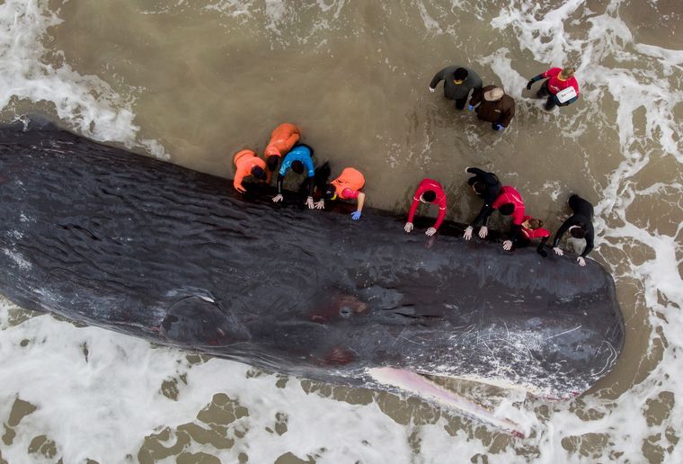 Murió una enorme ballena encallada cerca de Mar del Plata