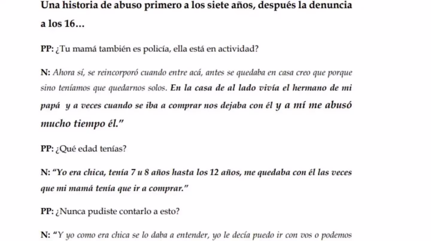 “La observación conductual, evidenciada en la entrevista, nos muestra una Nahir lentificada; que no puede realizar historicidad en el relato; pueril; sin resonancia afectiva ante algunos momentos del discurso; sin contradicciones ni alteraciones en su narrativa”, describió la profesional.