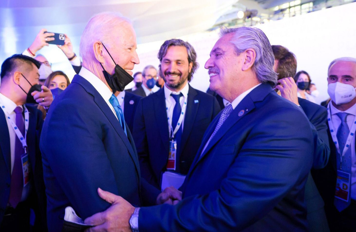 30 segundos de fama. Alberto se cruzó brevemente con su par de EEUU, Joe Biden, en el marco de los saludos protocolares en la Cumbre.