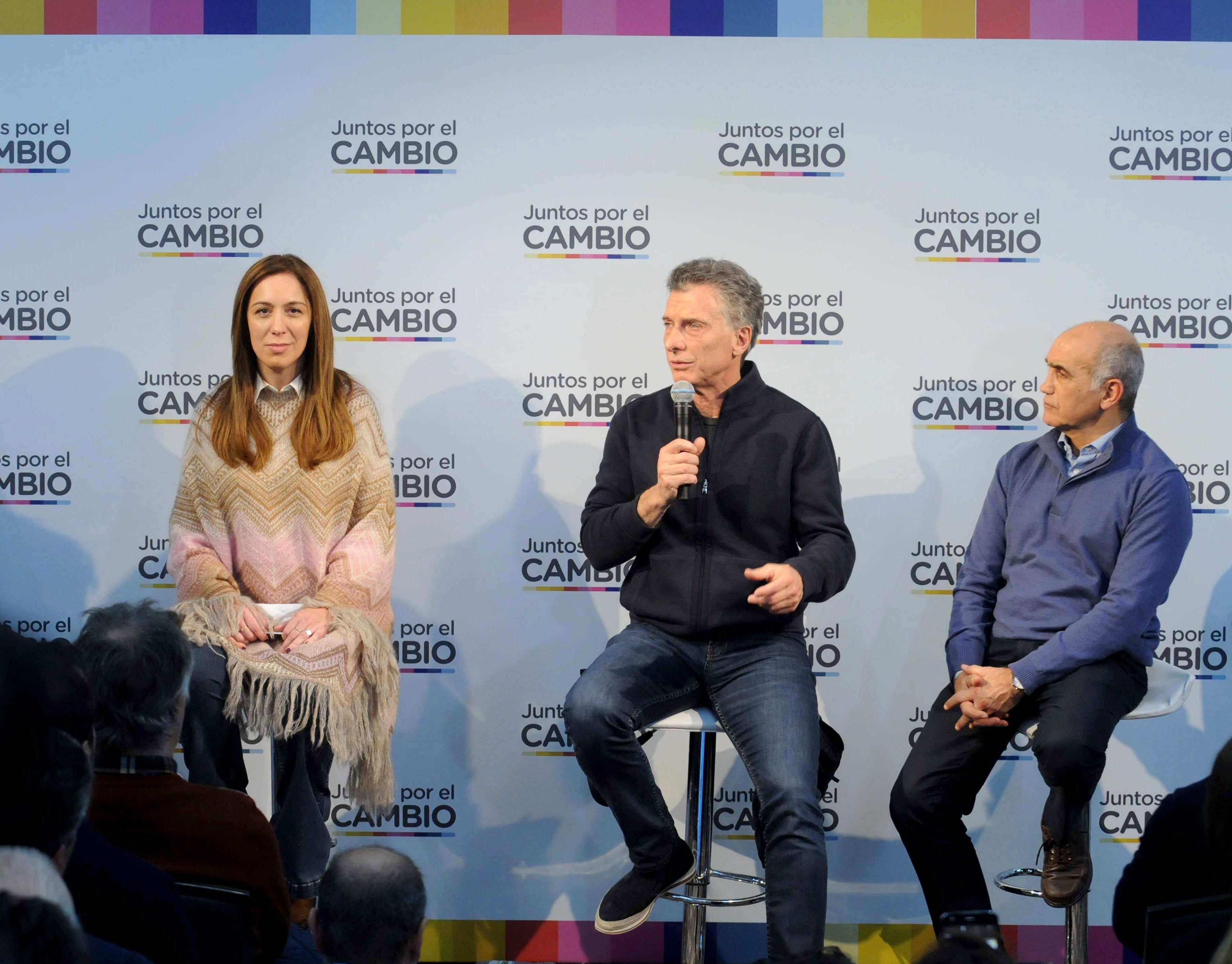 Macri estuvo acompañado por Vidal y el vicegobernador Daniel Salvador, quienes buscarán juntos su reelección en octubre, el candidato a vicepresidente Miguel Angel Pichetto, los jefes de Gabinete nacional y provincial, Marcos Peña y Federico Salvai, y todos los postulantes de Juntos por el Cambio a intendentes y legisladores bonaerenses.