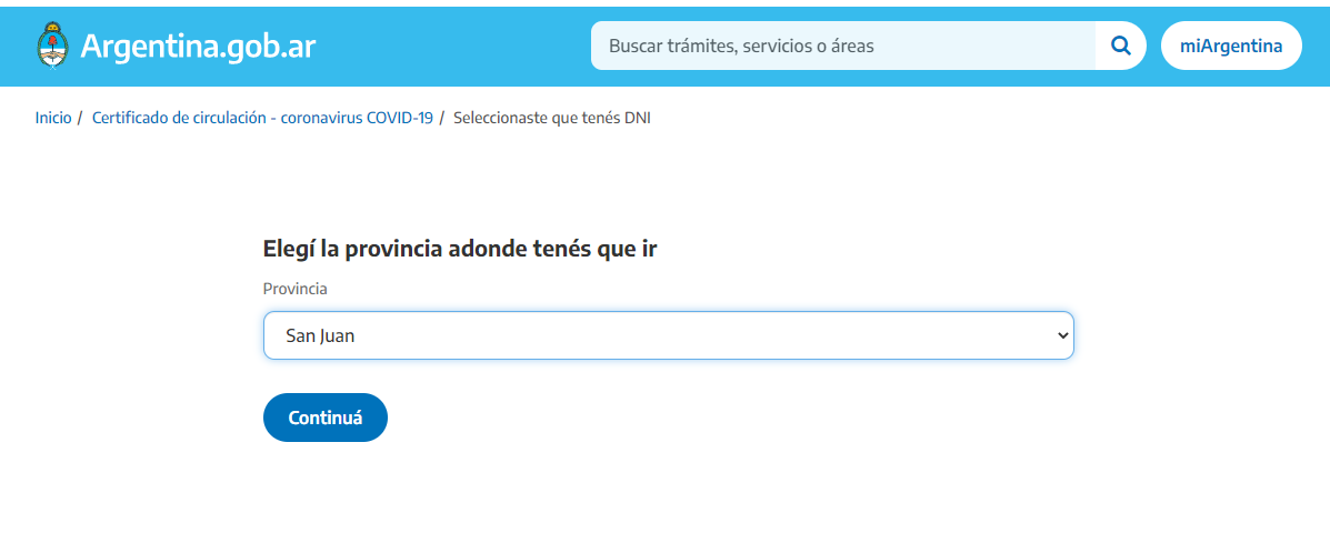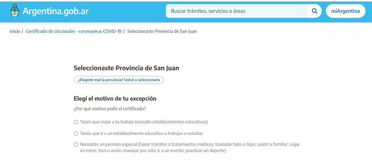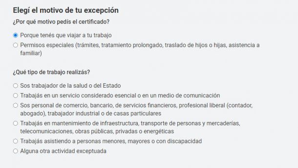 – Si se elige la opción “Porque tenés que viajar a tu trabajo”