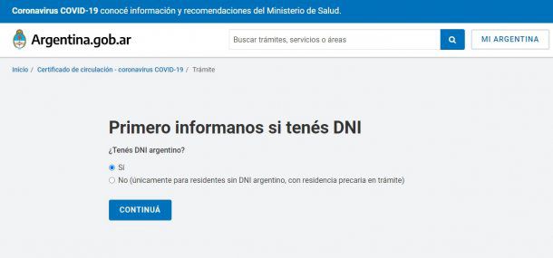 Informar en caso de que se tenga DNI argentino o no y hacer click en la opción correspondiente.