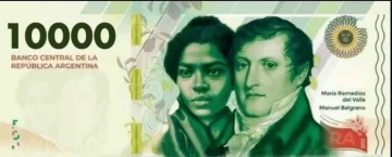 En primer lugar, el billete de $10.000 tendrá las imágenes de Manuel Belgrano y de María Remedios del Valle, heroína de la Guerra de la Independencia, en el anverso. La imagen que se utilizará de Belgrano es de un retrato que se le atribuye al artista francés François Casimir Carbonnier.