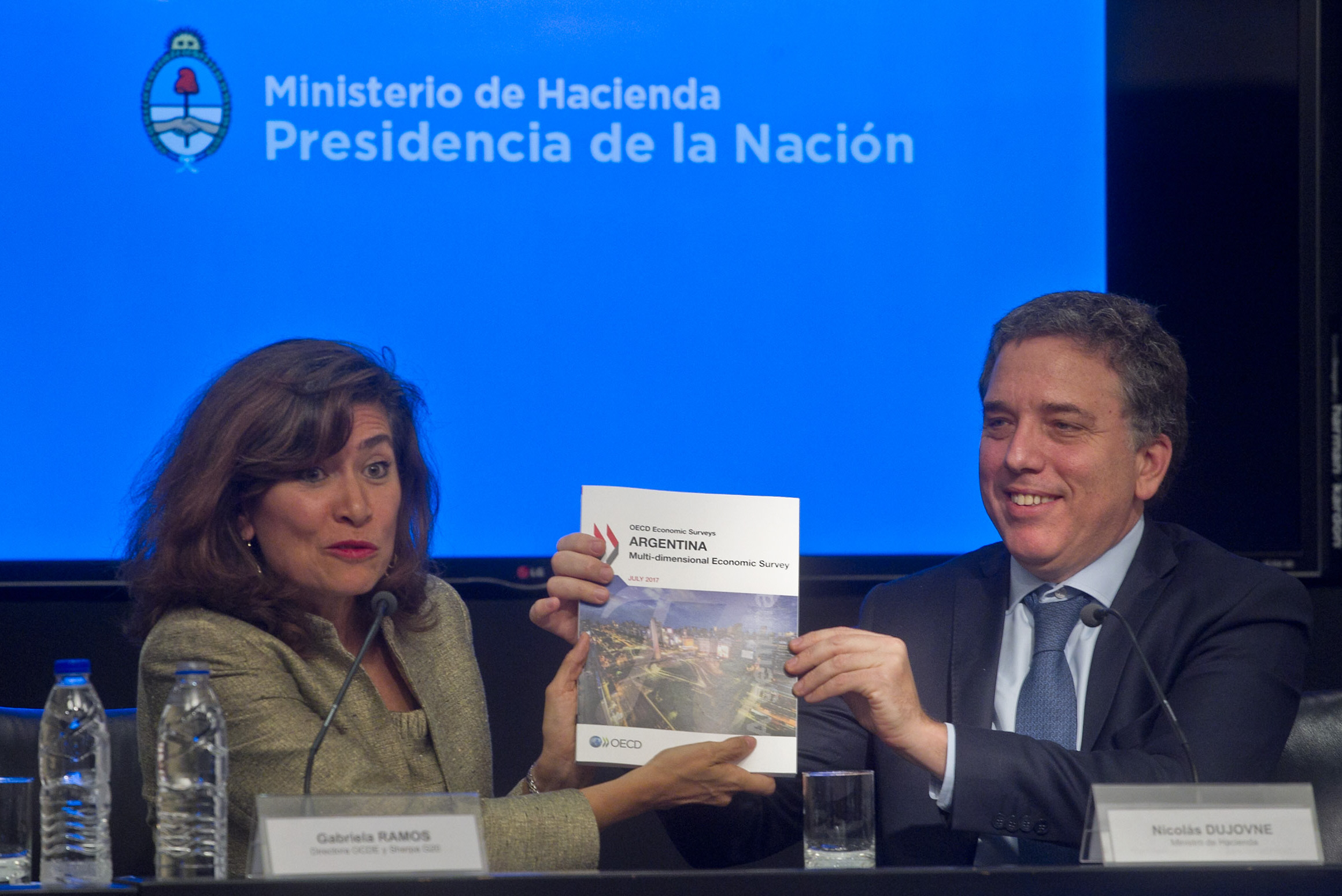 Ramos y Dujovne en la presentación. La directora de OCDE estimó que la economía argentina ‘crecerá 3% en 2017 y otro tanto en 2018‘. Ponderó las reformas estructurales y pidió mayor acceso a la educación.