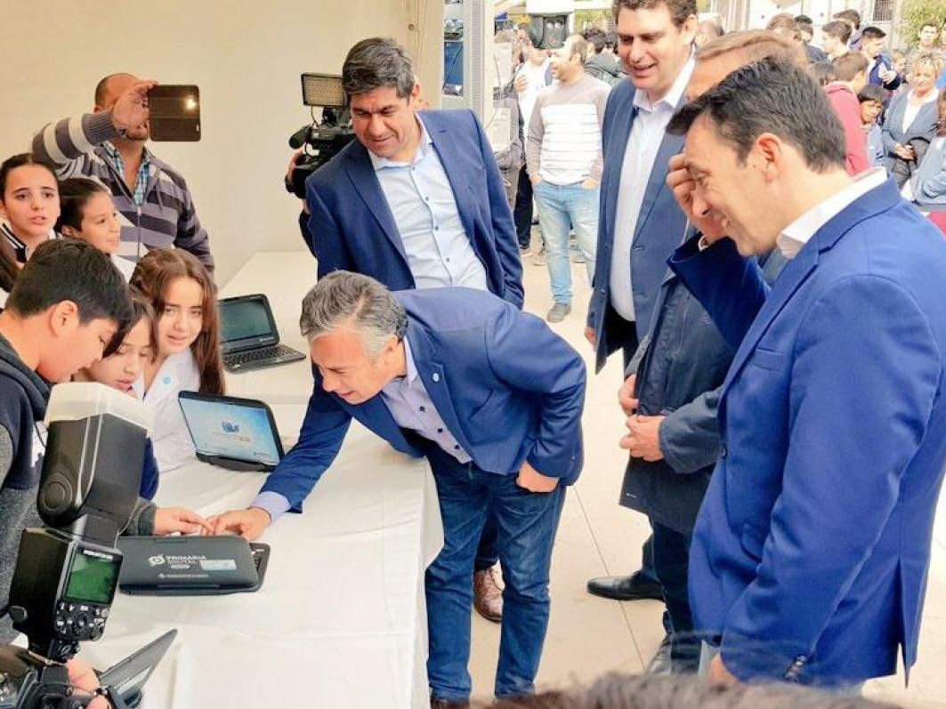 El gobernador recorrió el predio del Polo Tecnológico acompañado por los ministros de Economía, Infraestructura y Energía, Martín Kerchner; de Haciendas y Finanzas, Paula Allasino; y el director general de Escuelas, Jaime Correas, al inaugurar las capacitaciones del programa Mendoza TEC.