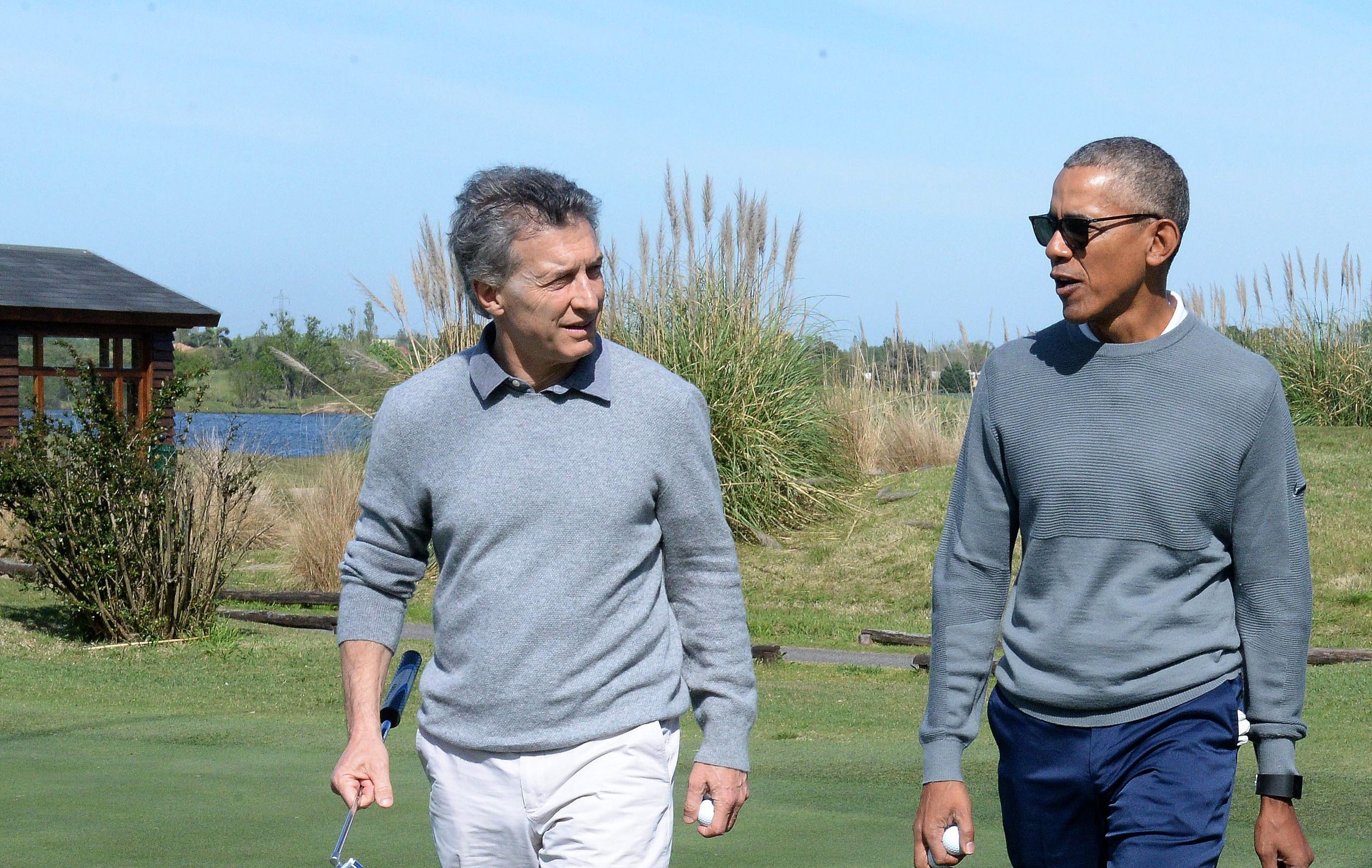 El presidente Mauricio Macri jugó ayer un partido al golf con el expresidente de EEUU, Barack Obama, en un club privado de la ciudad bonaerense de Bella Vista lo que confirmó la buena sintonía que hay entre ambos líderes.