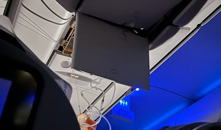 Además, la aeronave también evidenció algunos destrozos en los techos donde se ubican los compartimientos que funcionan como guarda equipajes.