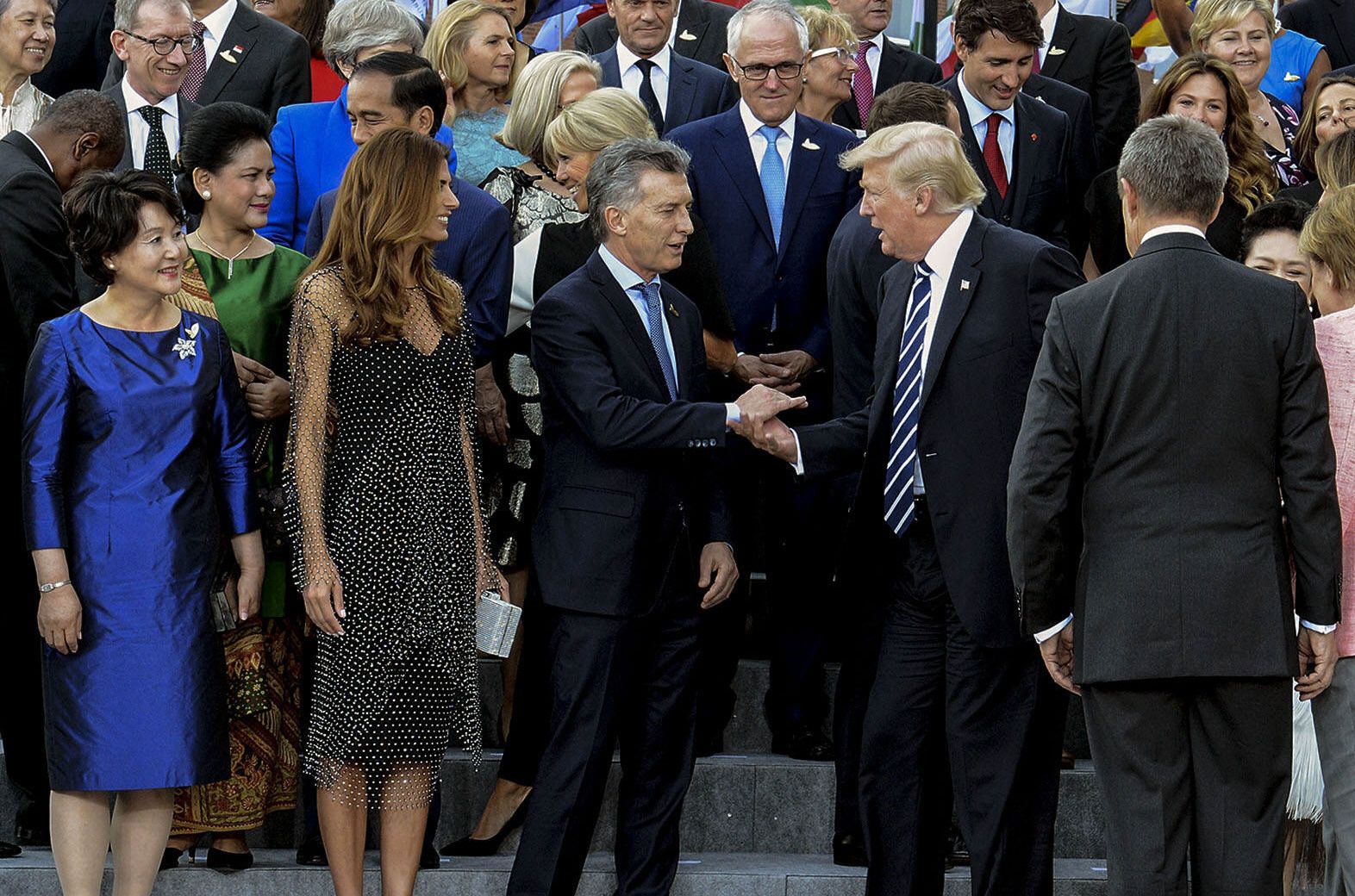 Igualmente, luego de la foto de familia que se sacaron los mandatarios con sus acompañantes en la explanada del lugar del concierto, Macri y May mantuvieron un breve diálogo informal, según transmitieron las cámaras del Media Center del Hamburg Messe.
