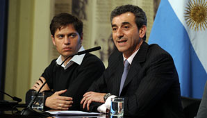 Buenos Aires, 29 de agosto.- El titular de Interior y Transporte, acompañado del viceministro de Economía, Axel Kicillof, y el titular del Orsna,Gustavo Lipovich, brindó esta tarde una conferencia de prensa para referirse al conflicto que generó la orden para que LAN y otras siete compañías dejen los hangares que operan en el aeroparque Jorge Newbery. "Nosotros no queremos echar a ninguna aerolínea del país", aclaró.