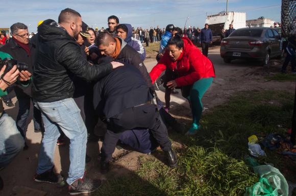 Macri estaba acompañado por la gobernadora María Eugenia Vidal y el intendente Carlos Arroyo, y según confirmaron a DyN, el mandatario debió interrumpir el discurso entre silbidos y pedradas y ser evacuado en una camioneta que también sufrió ataques con piedras.