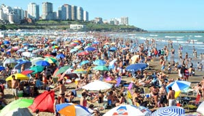 Buenos Aires, 29 de diciembre.- Los 35 grados de temperatura convocaron a las personas a disfrutar de las playas de Mar del Plata, donde los hoteles de cuatro y cinco estrellas tienen una ocupación del "100 por ciento", en tanto los de tres y dos llegan al "90 por ciento", informó Pablo Fernández, titular del Ente Municipal de Turismo local (Emtur).