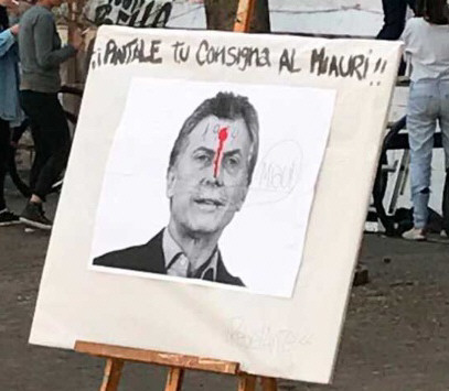La exhibición de un afiche en el patio santafesino de la Universidad Nacional de Rosario (UNR), en el que aparece una foto del presidente de la Nación, Mauricio Macri, con un balazo en la cabeza, junto a la leyenda "pintale tu consigna al Mauri", originó fuertes rechazos.