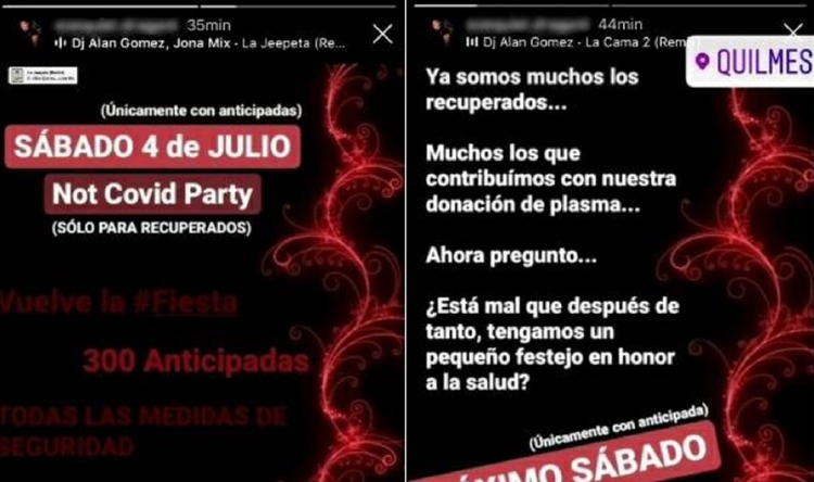 “Ya somos muchos los recuperados. ¿Está mal que después de tanto, tengamos un pequeño festejo en honor a la salud?”. La provocativa convocatoria que comenzó a circular hace pocos días a través de las redes sociales para una fiesta exclusiva de recuperados de COVID-19 sorprendió a las autoridades del municipio de Quilmes.
