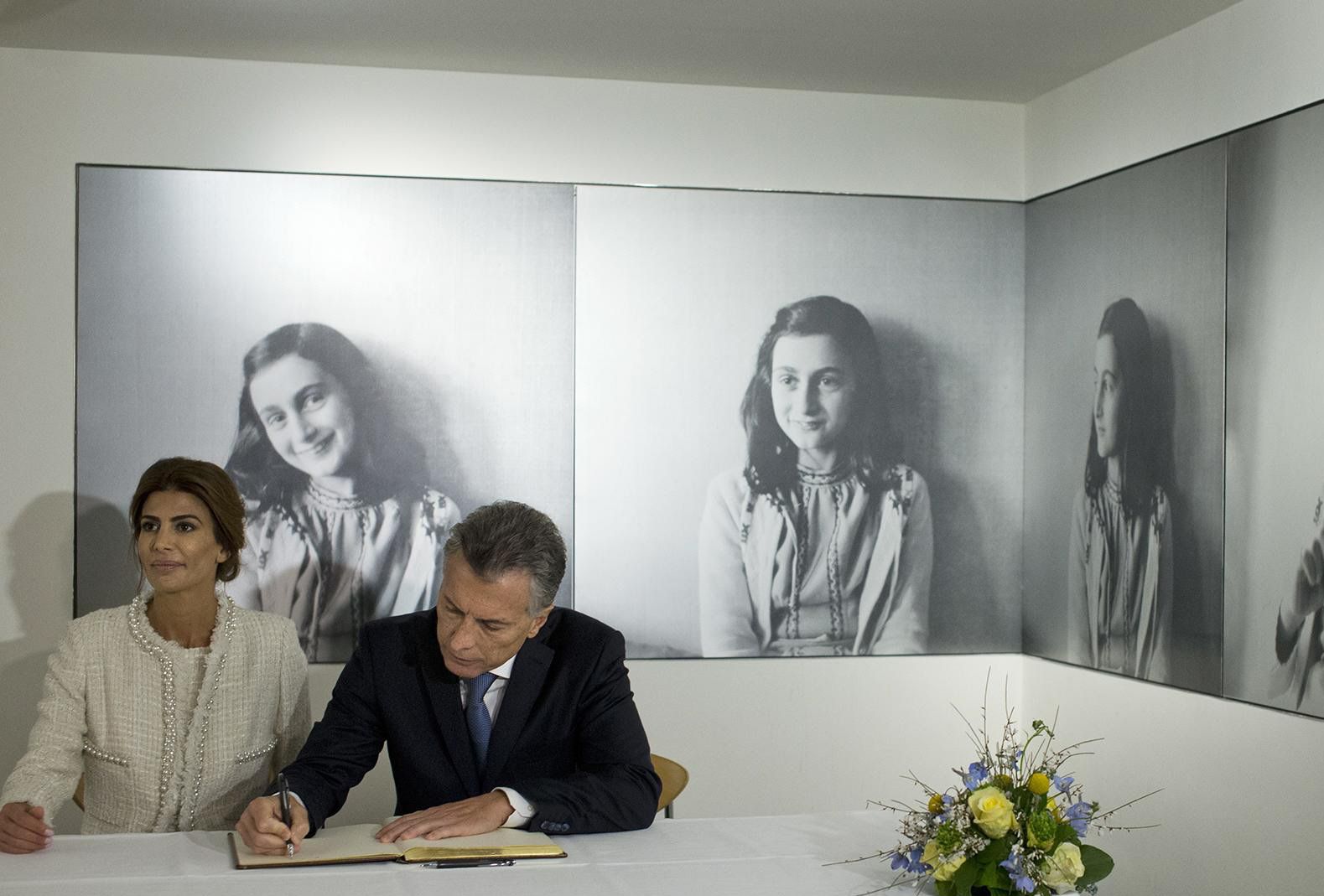Macri, Awada, y la reina visitaron ayer el museo, que alberga el escondite donde la niña judía escribió su famoso diario durante los más de dos años que estuvo allí escondida de los nazis junto a su familia antes de ser deportada a un campo de concentración. Entre junio de 1942 y agosto de 1944, Ana Frank permaneció escondida junto a su familia en los bajos de una vivienda en Ámsterdam. ‘Gracias por trabajar por un mundo mejor‘, fueron las palabras que pronunció el mandatario argentino tras recibir un cuadro de la ventana del ático de la casa de Ana como regalo de sus anfitriones, quienes, por su parte, lo elogiaron por ofrecer ‘una ventana de ilusión a mucha gente‘ en Argentina.