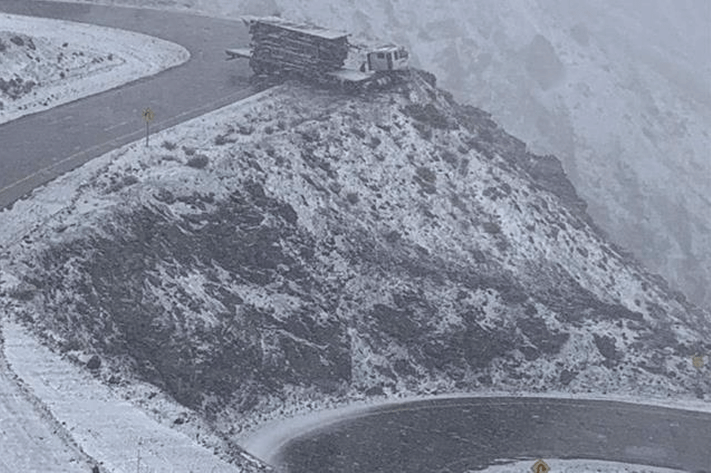 Por la nieve, un camión quedó al borde de caer a un precipicio