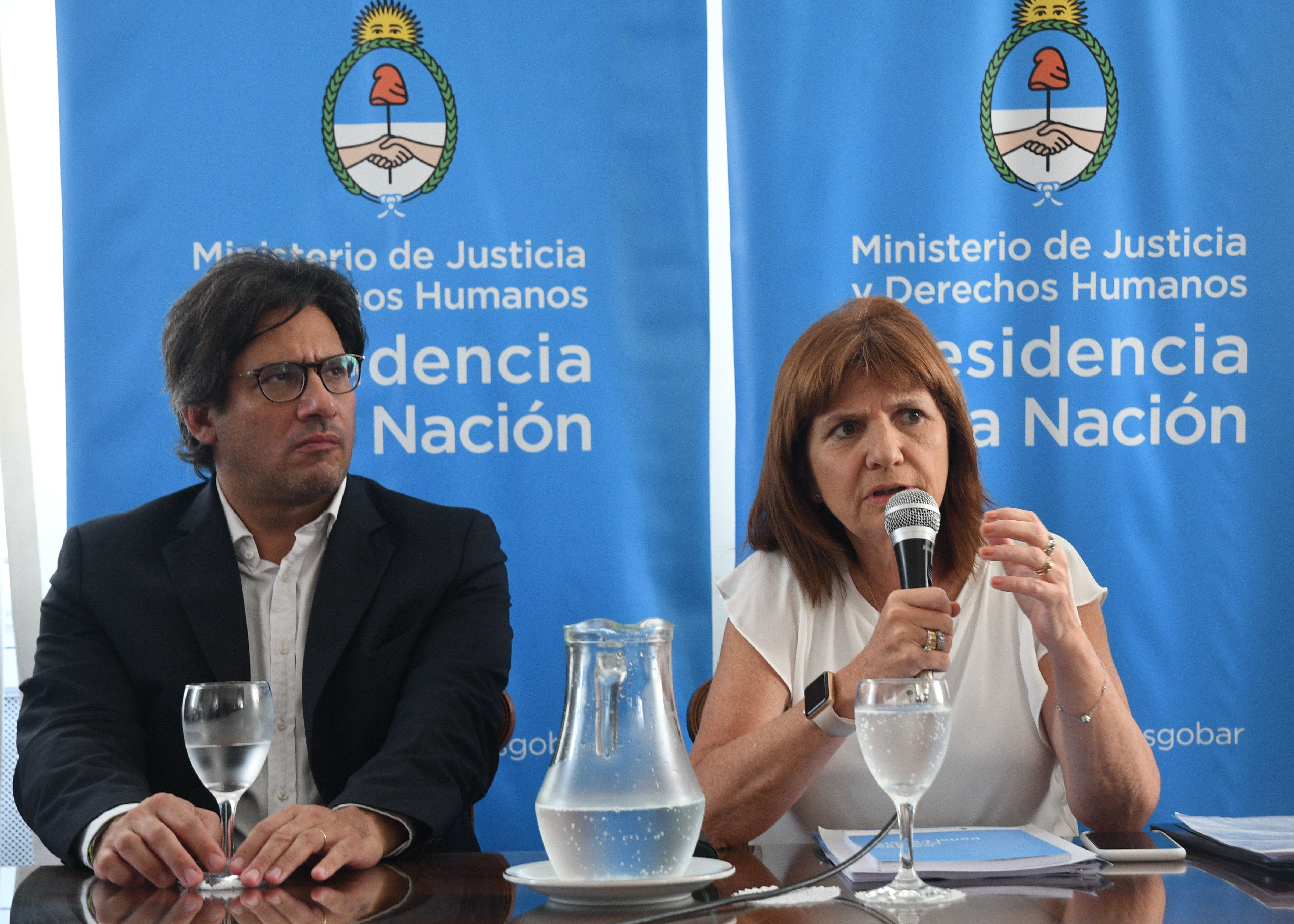 Juntos. El ministro de Justicia y Derechos Humanos, Germán Garavano y su par de Seguridad, Patricia Bullrich, en la presentación del proyecto.