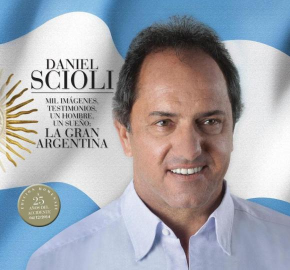 También repasa su gestión pública como vicepresidente, sus dos períodos como gobernador, y como diputado nacional. Las fotografías, en una edición muy cuidada de Atlántida, están acompañadas con textos breves de Scioli, que el jueves pasado presentó el libro. El título de la obra se relaciona con sus sueños. ‘La Gran Argentina’ remite al nombre de la lancha con la que compitió en todo el mundo y al país que proyecta desde su aspiración presidencial. Todo plasmado en 300 páginas, con los momentos más significativos de su vida, el casamiento con Karina Rabolini, el reencuentro con su hija Lorena, el dramático incendio de su departamento, y los encuentros con grandes personalidades del mundo, como la reciente visita al papa Francisco.