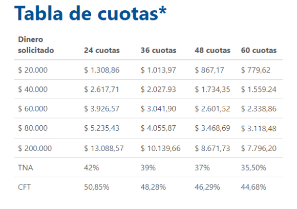 Tomando en cuenta el último haber posible ($14.067) el crédito máximo posible sería igualmente de $80.000, pero el jubilado podrá optar por devolverlo en menor cantidad de cuotas (desde 36).