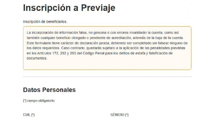 El primer paso es inscribirse. Para ello, hay que ingresar al sitio https://previaje.gob.ar/app/beneficiarios (hacer click aquí) y registrarse.