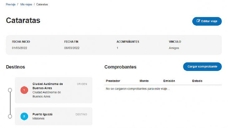Los viajes cargados llevan un título y pueden ser editados. Una vez cargado, es el momento de cargar los comprobanteso facturas.