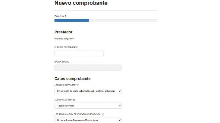Al indicar el CUIT del proveedor, la web del Previaje hace una verificación y automáticamente trae su razón social. Luego, hay que informar dónde y cómo se compró; si fue con algún descuento o promoción; y el monto de la compra.