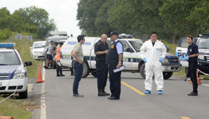 La Policía logró ubicar a los prófugos, condenados a prisión perpetua por el Triple Crimen de General Rodríguez, ayer a las 3.40 en la ruta provincial 20, a la altura de Ranchos, cuando se bajaron de una camioneta Ford Ranger y balearon a dos oficiales que les pidieron que se detuviesen en un control vehicular.