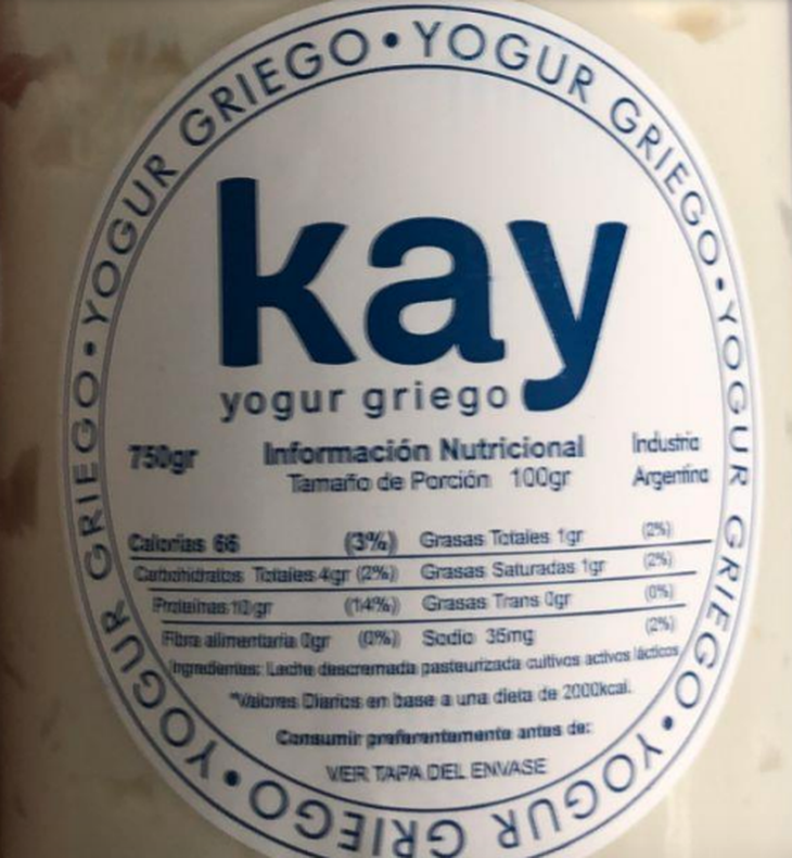 La Administración Nacional de Medicamentos, Alimentos y Tecnología (ANMAT) prohibió la elaboración y comercialización de "Yogur griego" marca Kay, por considerarlo ilegal.