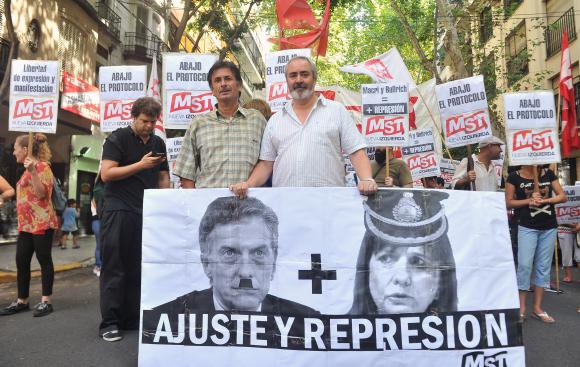 La protesta, organizada por el Movimiento Socialista de los Trabajadores (MST), fue encabezada por el diputado porteño de esa fuerza Alejandro Bodart y su principal referente política, Vilma Ripoll.