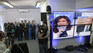 Buenos Aires, 9 de octubre.- Cristina Kirchner y el presidente de Rusia, Vladimir Putin, brindaron una videoconferencia para anunciar que la Televisión Digital Argentina incorporará a su grilla la señal de noticias en español de la estatal rusa RT. "Estamos contentos de incorporarla, buscamos la pluralidad de voces, de culturas, multilateralismo en la información", señaló la jefa de Estado al tomar la palabra. "Queremos dar a conocer la verdadera Argentina y la verdadera Rusia", aseveró.