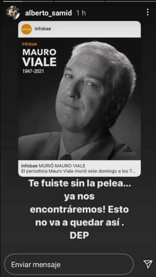 Luego de que se conociera que murió Mauro Viale a los 73 años tras estar internado por coronavirus, muchas figuras del espectáculo, periodistas y dirigentes políticos despidieron al periodista en las redes. Uno de los mensajes que destacó fue el de Alberto Samid quien lamentó la pérdida y recordó su pelea televisiva.