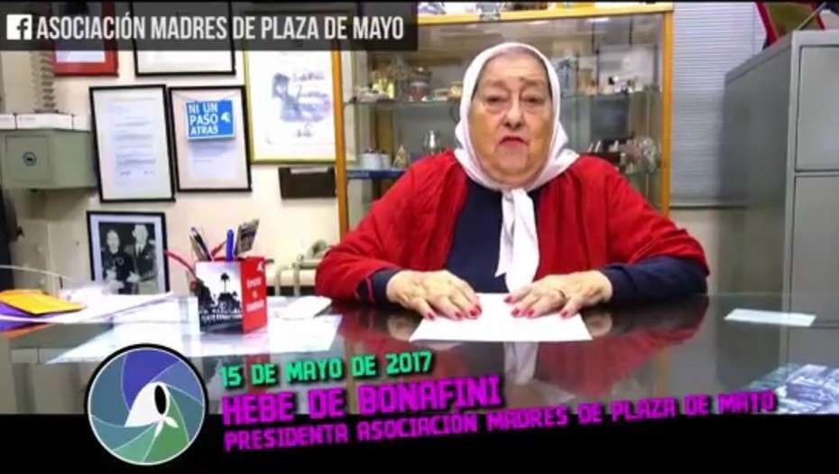 "Tenemos claro que este es el precio que tenemos que pagar por haber dicho que Macri era nuestro enemigo cuando nadie todavía ni lo pensaba, por habernos quedado en la plaza del 9 al 10 de diciembre para que él no pise esa plaza que es del pueblo y por denunciar que él y su Gobierno fueron partícipes de la dictadura con sus empresas", lanzó la titular de Madres de Plaza de Mayo y, a continuación, agregó que están dispuestas "a pagar ese precio". "Las Madres decidimos jugarnos la vida por la libertad de la misma manera que se la jugaron nuestros hijos", dijo.