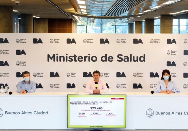 El ministro de Salud porteño, Fernán Quirós; el subsecretario de Atención Primaria, Gabriel Battistella, y la directora general de Planificación Operativa, Paula Zingoni, brindan detalles de la situación sanitaria de la Ciudad en relación a la curva de contagios, su evolución y el plan de vacunación, en el marco del distanciamiento social, preventivo y obligatorio por el coronavirus.