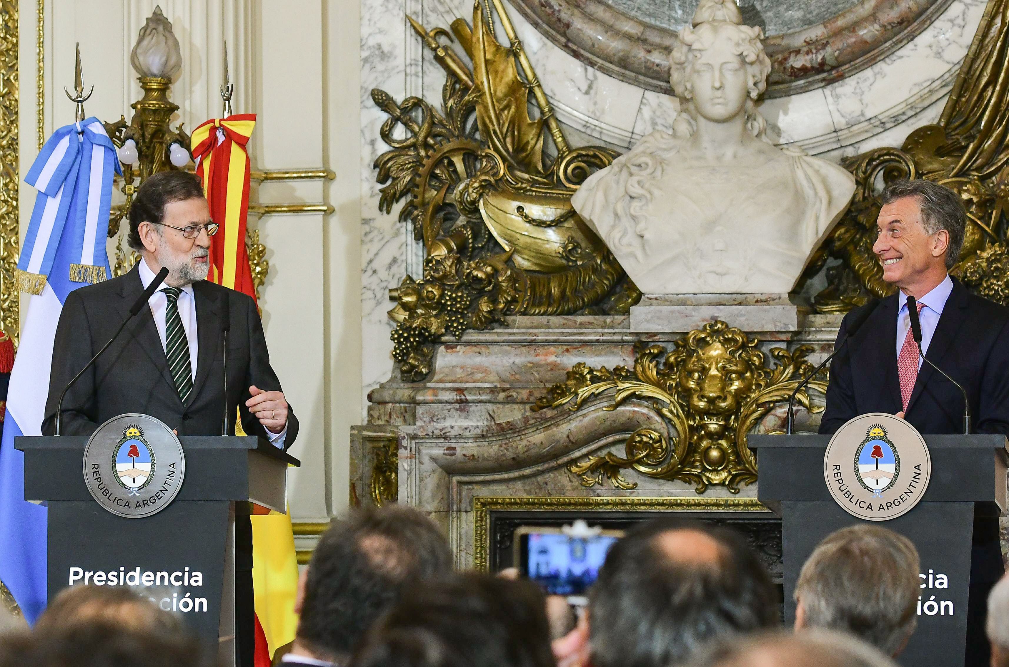 Rajoy, de hecho, dijo que vino al país con un “claro mensaje político”, que es el de “compartir valores y objetivos”, y en ese sentido, afirmó creer en el “papel protagonista que corresponde a Argentina y España” en los planes entre ambos bloques regionales, y es por eso que reiteró el “firme apoyo de España a un acuerdo Unión Europea-Mercosur”.