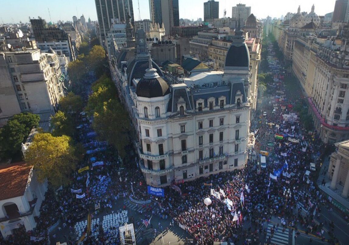 "A continuar la lucha", arengó la dirigente desde el palco ante 280 mil personas, según los organizadores. En el mismo sentido, el titular del Sindicato Único de Trabajadores de la Educación de Buenos Aires (SUTEBA), Roberto Baradel, pidió en su discurso la "unidad de la clase trabajadora para ir hacia un paro general en contra de la política de ajuste (del Gobierno nacional) y del FMI (Fondo Monetario Internacional)", con quien se negocia un crédito.