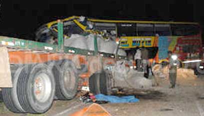El choque ocurrido esta madrugada en el paraje Parada Pucheta se produjo en forma frontal entre un camión de carga y un colectivo de la empresa Crucero del Norte sobre la ruta nacional 14, cuando el ómnibus viajaba de Paraguay hacia La Plata.