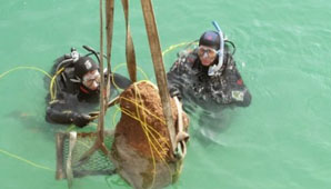 La singularidad del caso fue que el lugar se inundó hace unos meses, y los restos quedaron sumergidos a más de tres metros de profundidad, hecho que requirió el trabajo conjunto entre profesionales, personal de la empresa y de la Escuela de Buceo de Olavarría.