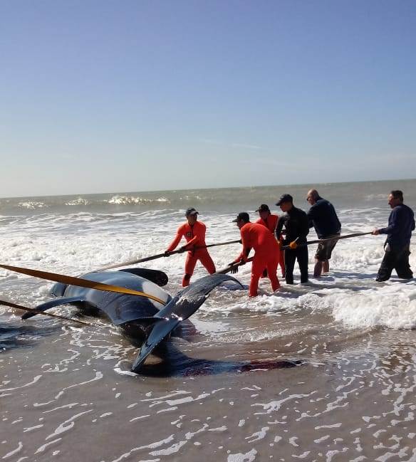"Estamos esperando que llegue personal de la Fundación Aquarium de Mar del Plata para que bajen algún protocolo porque hasta el momento es solo el esfuerzo de los voluntarios", había informado Vallejo. El cuadro de situación cambió con el correr de las horas: uno de los especímenes murió en la costa. Según especialistas del Aquarium, se ahogó porque había quedado en una mala posición y los expertos no llegaron a tiempo para advertir esa condición.