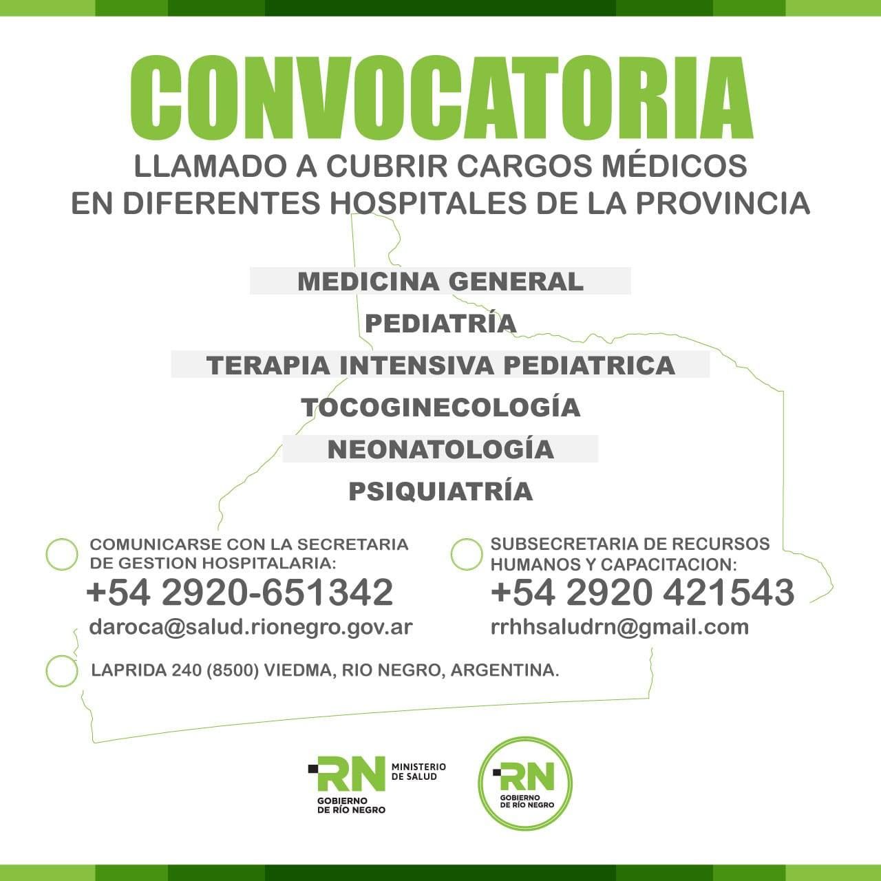 “Tenemos el sistema de formación de residencia y gran parte de los egresados se radica en la provincia y forma parte del plantel médico de los hospitales; pero buscamos para cubrir vacantes de especialidades que nos faltan, no sólo en Río Negro”, apuntó.