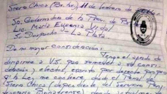 ‘He cumplido inexorablemente con todos los plazos legales y cronológicos que la ley estipula desde que fui detenido aquel fatídico jueves 3 de febrero de 1972’, se lee en el texto que publica Clarín, por lo cual le solicita a la mandataria provincial que interceda a favor de su libertad.