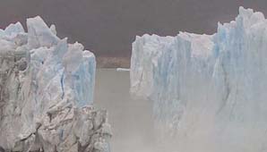 La mole de hielo que volvió a formar un puente entre las dos partes en que divide al Lago Argentino de la provincia de Santa Cruz se derrumbó y arrojó al agua toneladas de hielo que se elevan casi 60 metros sobre la superficie lacustre, tras vencer el túnel que tiene una luz de 30 metros.