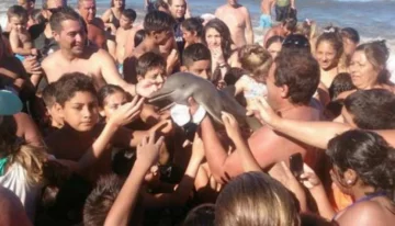 Buenos Aires.- Un hombre que estuvo de vacaciones en Santa Teresita el fin de semana pasado encontró una cría de delfín cerca de la orilla y no tuvo mejor idea que sacarlo del agua para sacarle una foto. Decenas de personas se juntaron alrededor del animal sin importar su situación apremiante.