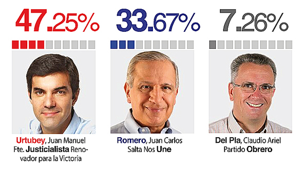 En la ciudad capital, Romero se impuso con más del 39 por ciento de los votos, mientras que Urtubey totalizó casi el 36 por ciento y en tercer lugar se posicionó el candidato del Partido Obrero con el 11 por ciento. En estas elecciones, los salteños eligieron los candidatos a senadores y diputados provinciales, intendentes y concejales de 60 municipios que quedaron habilitados para competir en las generales del próximo 17 de mayo.
