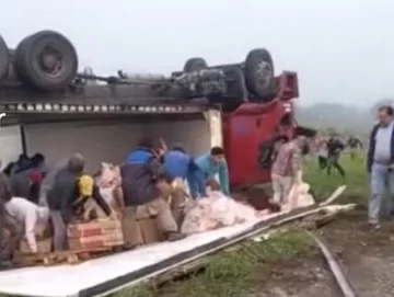 Según indicó a Cadena 3 la subcomisaria María Estrada, por la densa niebla en el camino, el conductor no se pudo percatar del cruce y terminó haciendo una maniobra que provocó el vuelco y la carne que llevaba quedó en la banquina.