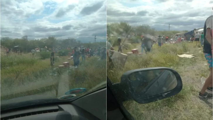 El violento accidente, se produjo en la ruta Nacional N° 157 en la provincia de Catamarca, situación que fue aprovechada por pobladores que saquearon el cargamento que estaba desparramado por la banquina.