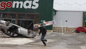 Bariloche, 20 de diciembre.- Graves incidentes y destrozos se presentaron en Bariloche, cuando esta mañana un grupo de alrededor de un centenar de personas de las poblaciones más pobres de la ciudad se enfrentó con la policía local, luego de ingresar por la fuerza al supermercado Changomas y saquear ese centro comercial.