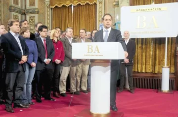 Scioli realizó esas declaraciones en una conferencia de prensa en el salón Dorado de la Gobernación, en La Plata, donde se mostró con todo su Gabinete, incluido el flamante presidente del Instituto de Cultura bonaerense, el ex intendente porteño Jorge Telerman. Sin embargo, uno de los ausentes en el evento fue su vicegobernador, Gabriel Mariotto, quien según Scioli no se presentó porque sólo fue convocado ‘el equipo ejecutivo‘.